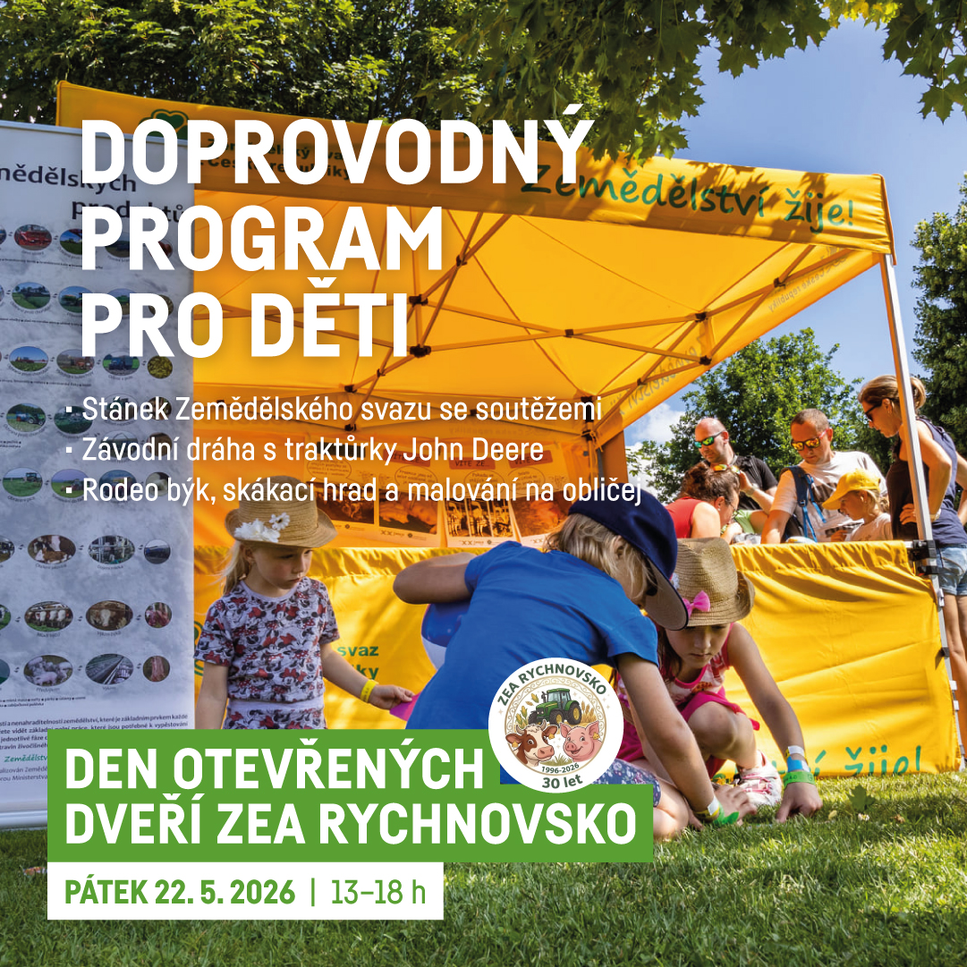 Vážení zákazníci, rádi bychom vás informovali o velikonoční otevírací době prodejny farmářských produktů společnosti ZEA Rychnovsko a.s. Prodejna bude otevřena pouze ve čtvrtek 2. 4. 2026 v čase od 8:00 do 11:00 a od 11:30 do 16:30 hodin, v pátek 3. 4. 2026 bude zavřeno. Zároveň upozorňujeme, že výdej mléka bude mimořádně probíhat již ve čtvrtek 2. 4. 2026, a to místo obvyklého pátečního termínu.